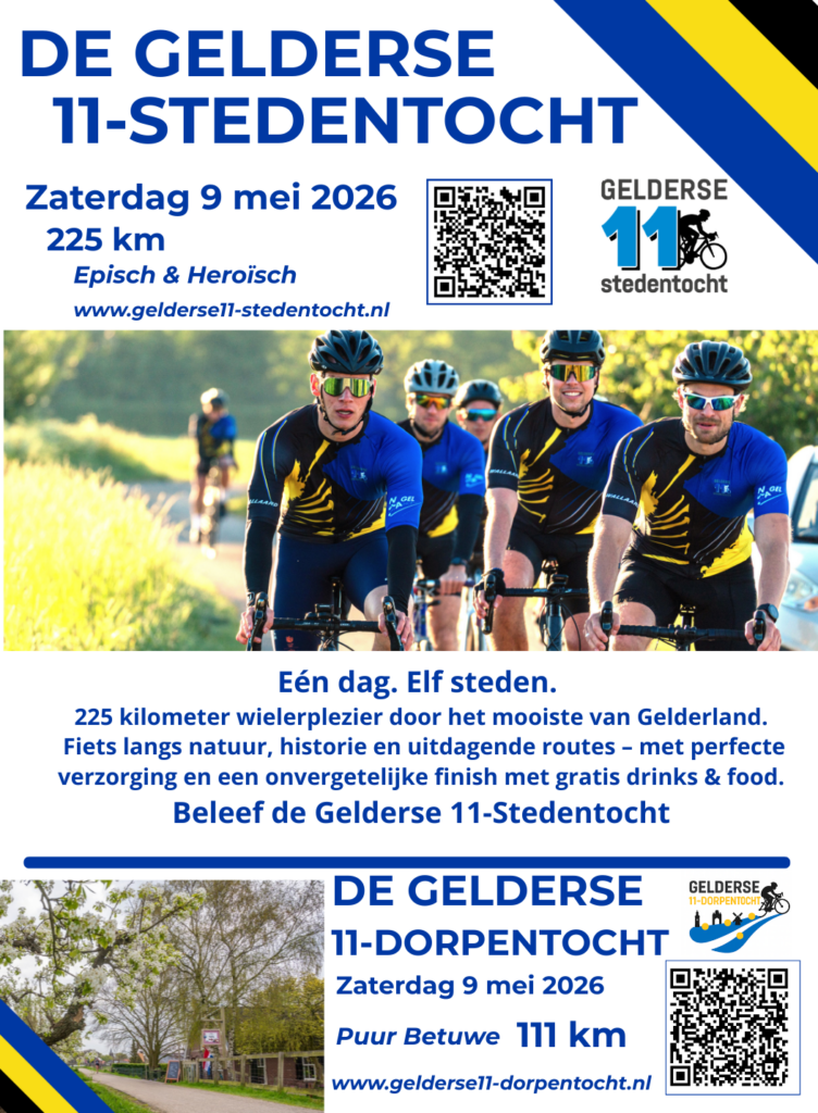 Op zaterdag 9 mei 2026 is het weer zover: de Gelderse 11-Stedentocht keert terug!