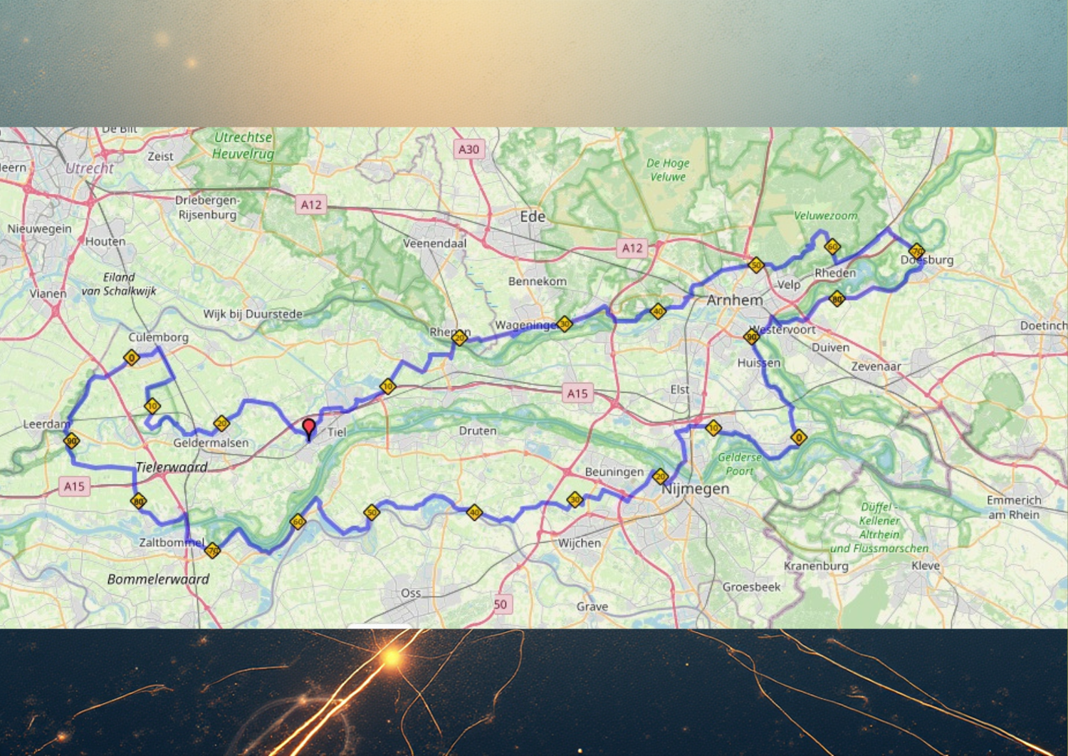 Een ééndaagse rit van 225 kilometer langs elf karaktervolle Gelderse steden – dwars door rivierenlandschappen, over de Veluwse heuvels en langs de mooiste dijken van Nederland.